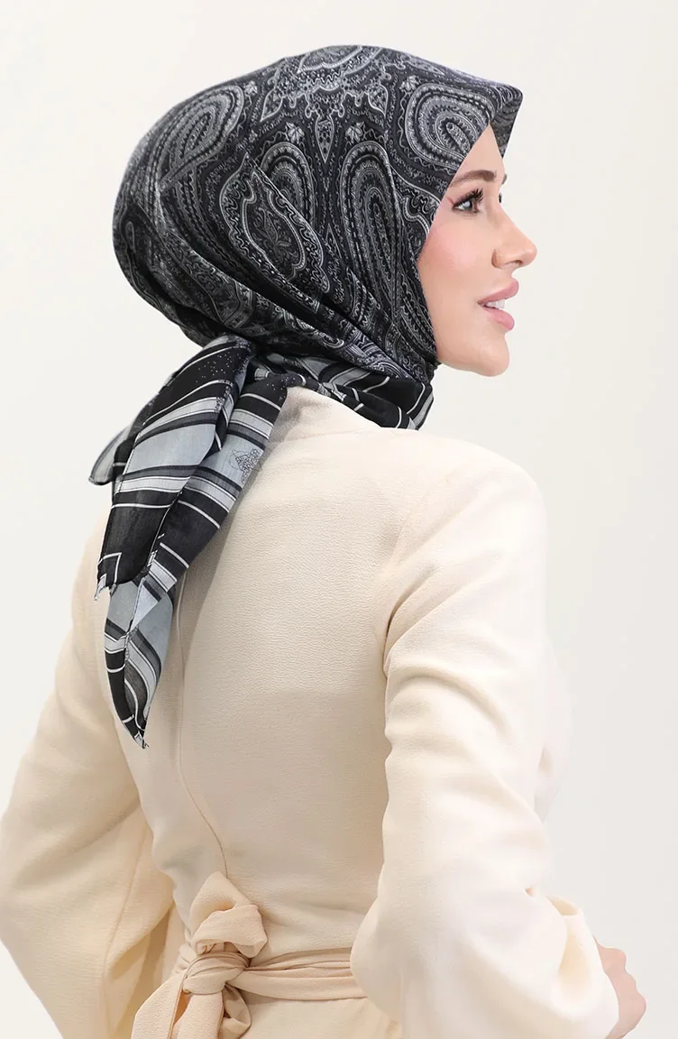 Etnik Kehribar Eşarp 70275-01 Siyah Gri