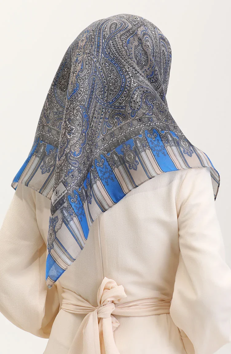 Etnik Kehribar Eşarp 70275-08 Mavi