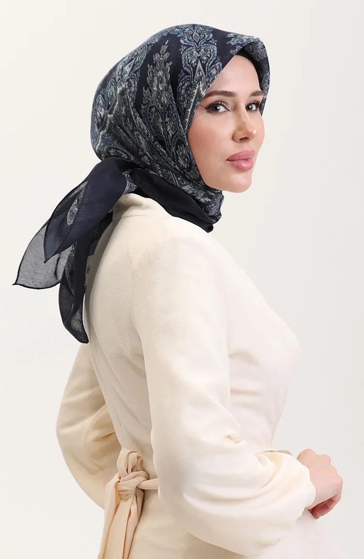 Etnik Kehribar Eşarp 70279-06 Lacivert