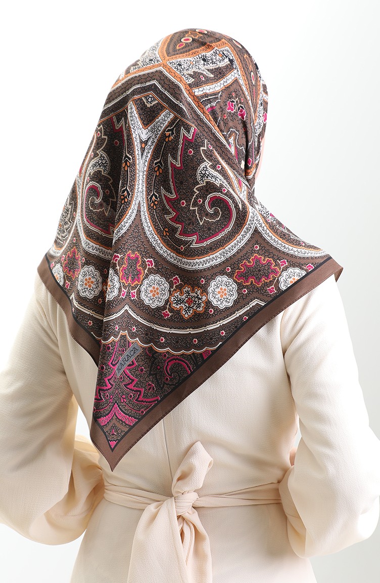 Karaca Desenli Cupra Eşarp 82013-07 Kahverengi Fuşya