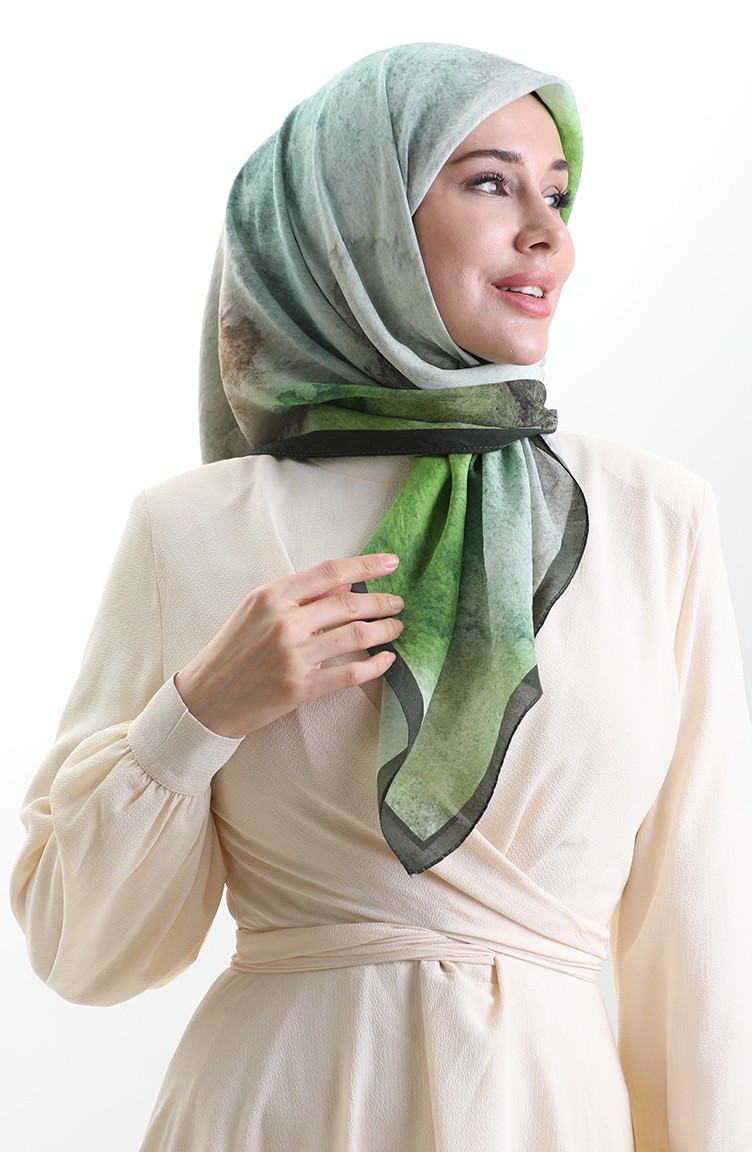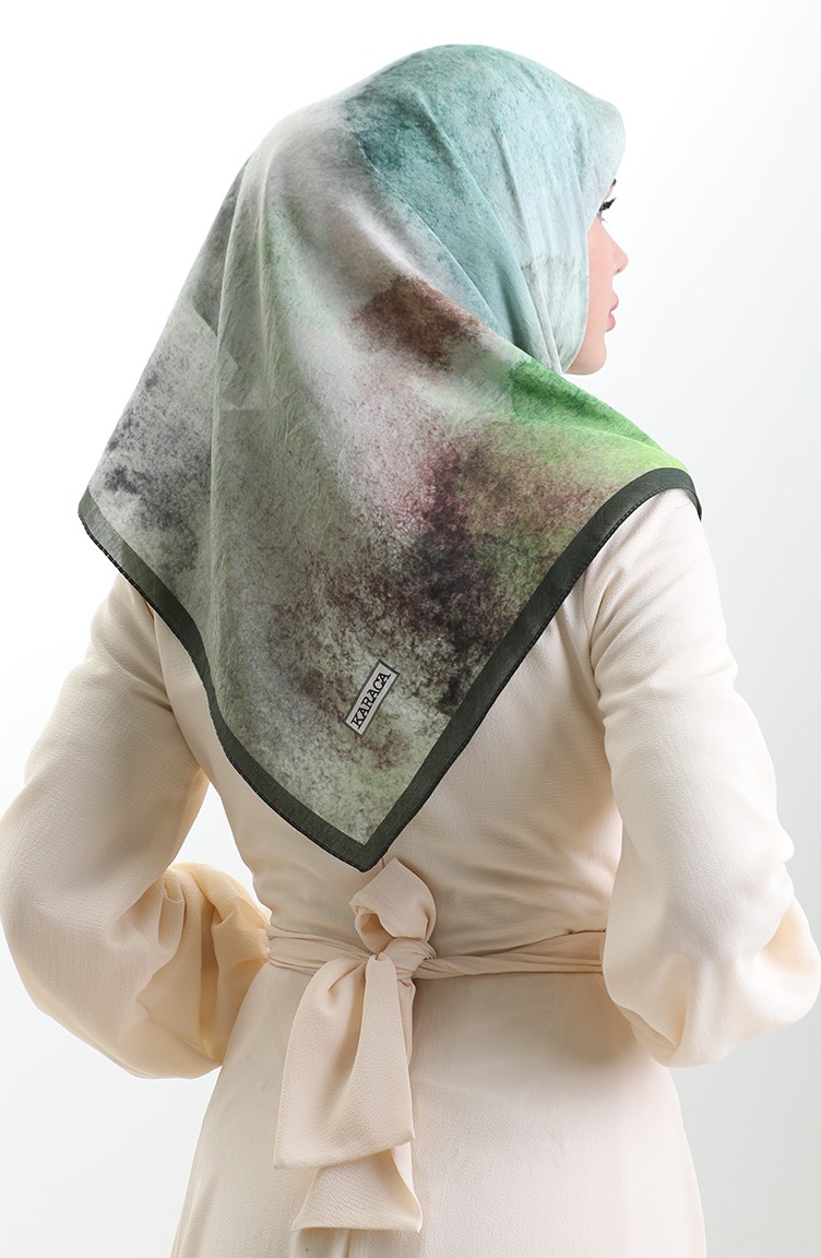 Karaca Desenli Doğal Elyaf Eşarp 82018-06 Zümrüt Yeşili Fıstık Yeşili