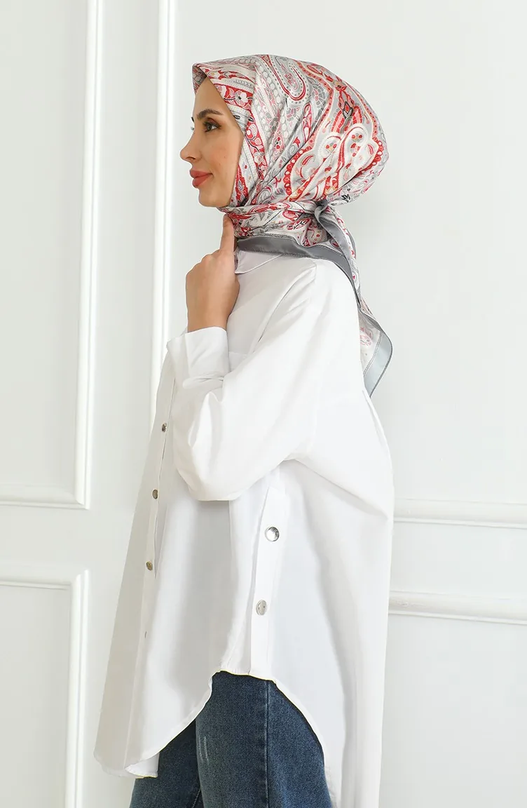 Gri renktedir. Rayon kumaş. Desenli kumaş. 4 Mevsim tercih edebilirsiniz. Standart.