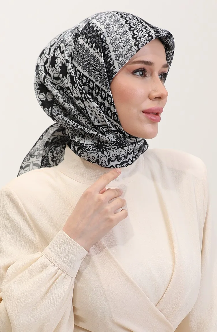 Kehribar Eşarp 70291-08 Siyah Beyaz