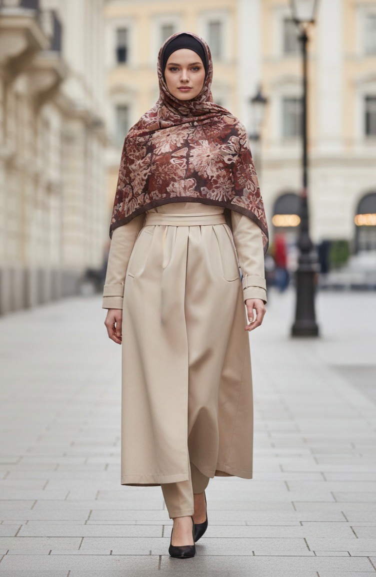 Kahverengi renktedir. Polyester kumaş. Desenli kumaş. 4 Mevsim tercih edebilirsiniz. Standart.