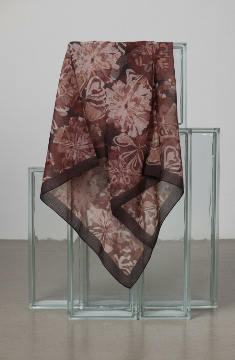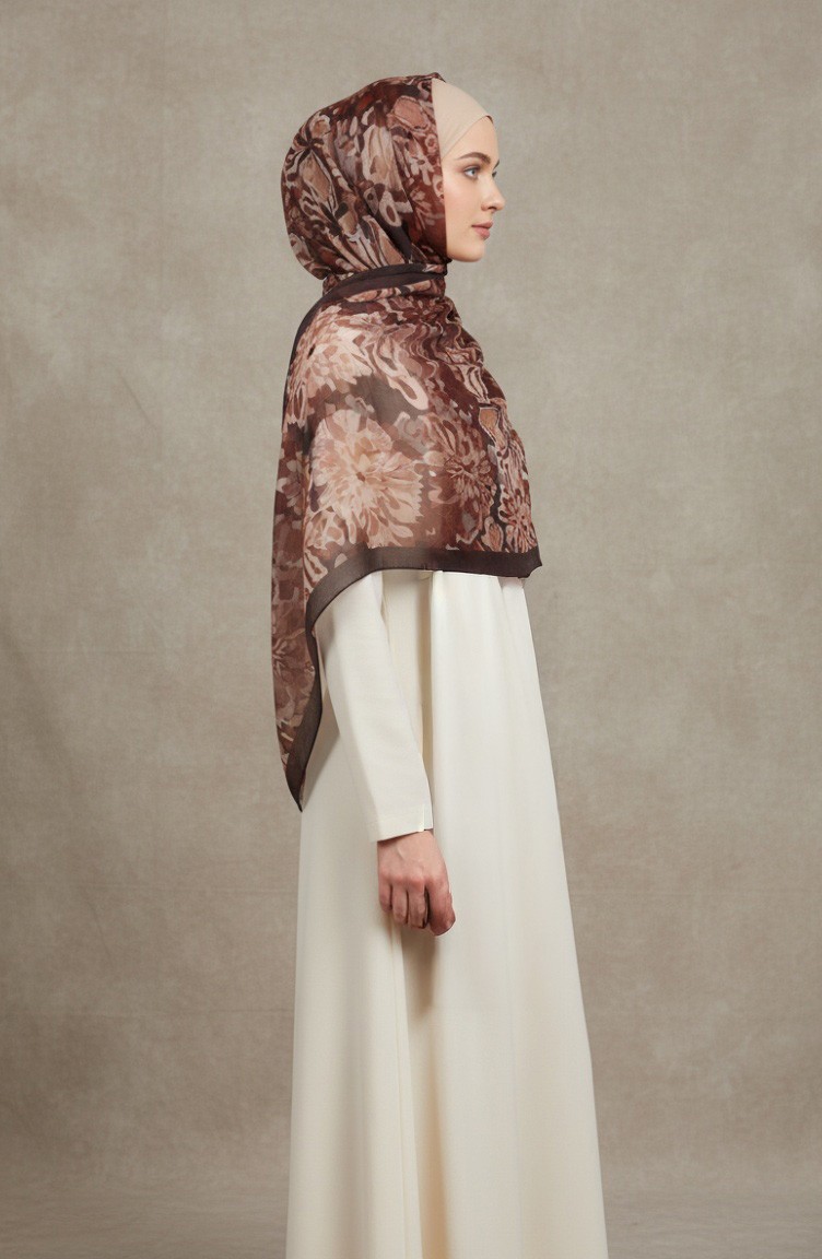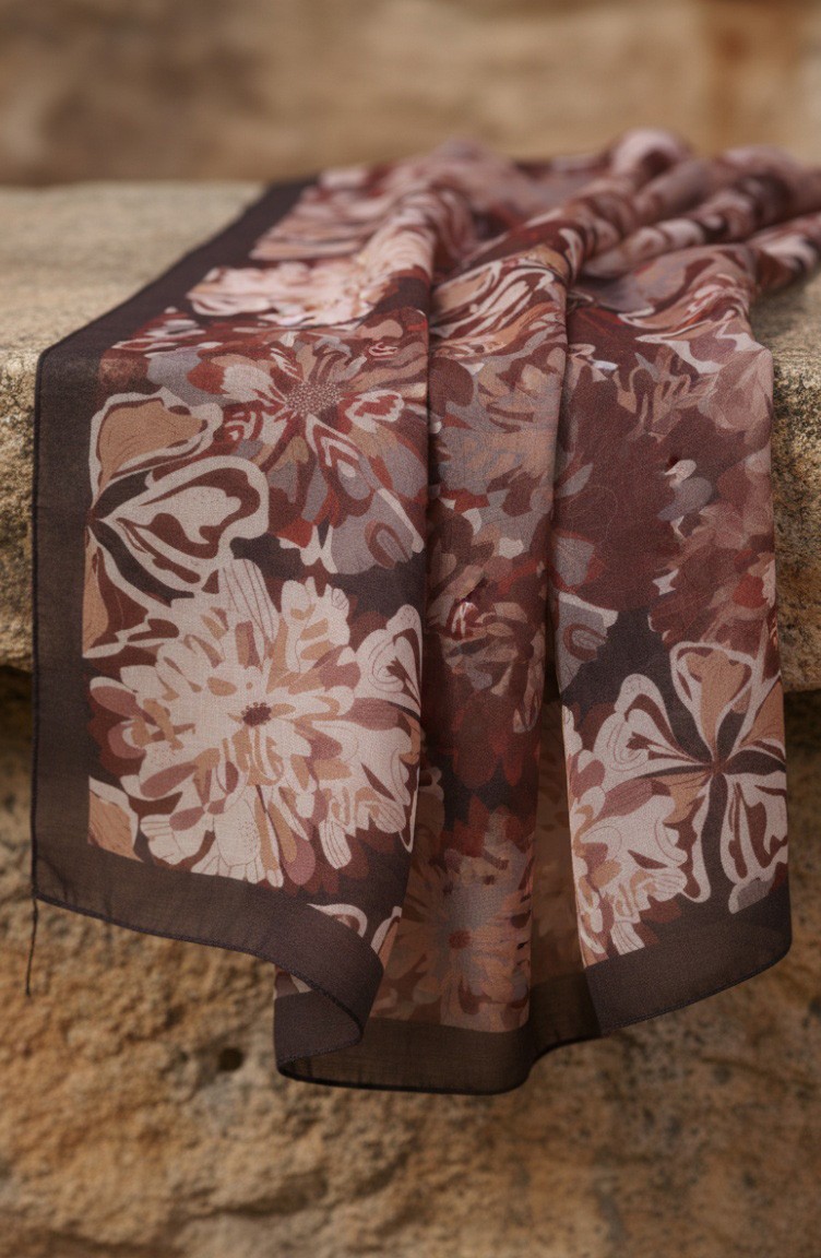 Çiçek Desenli Kehribar Şal 70357-12 Kahverengi