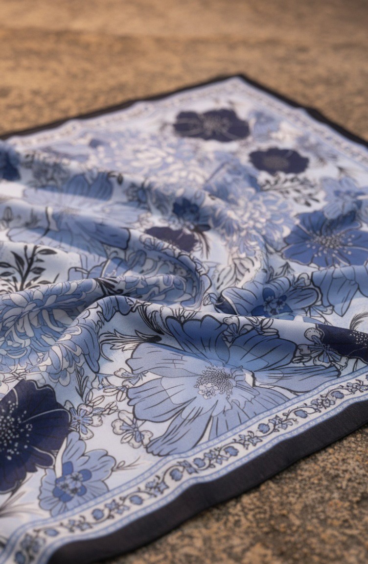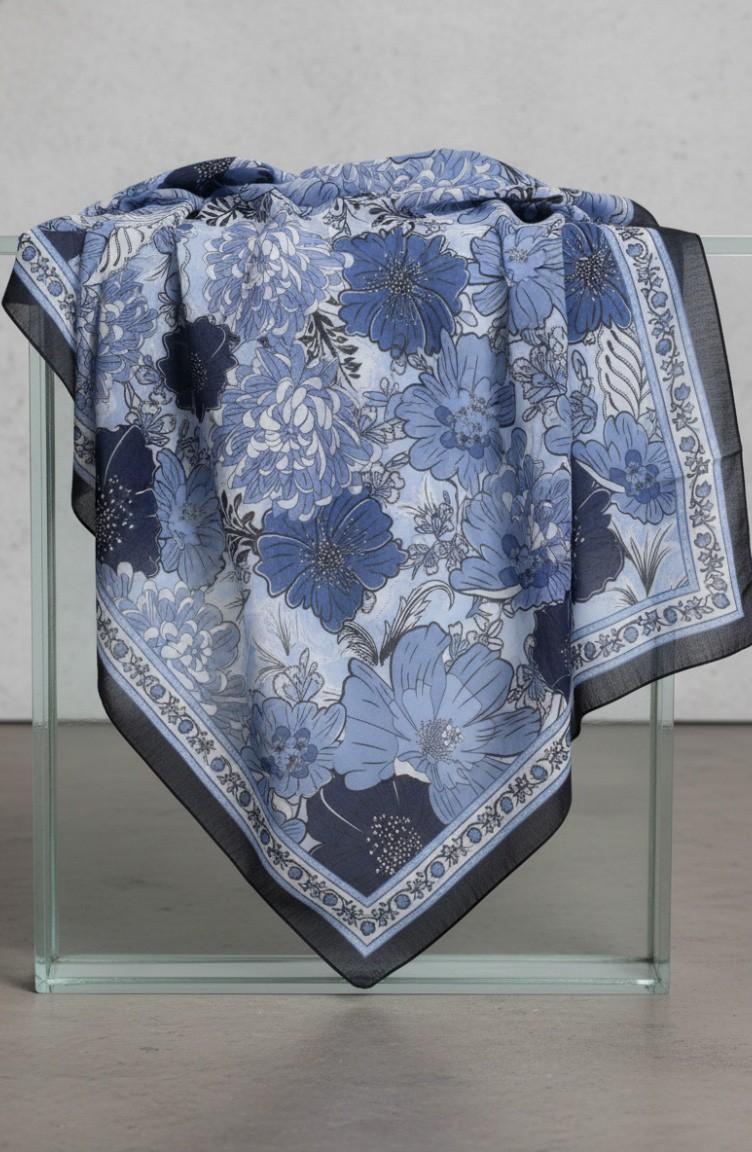 Çiçek Desenli Kehribar Şal 70358-05 Lacivert