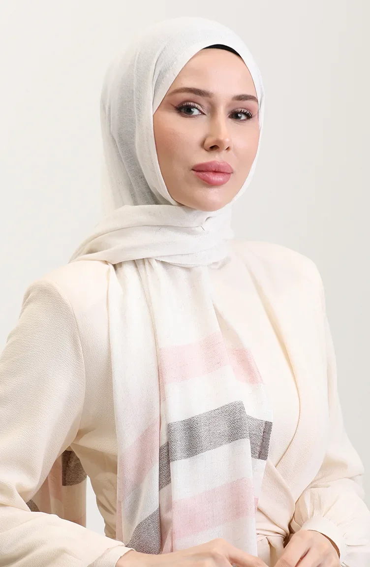 Çizgi Desenli Keten Şal 70287-04 Kahverengi Pudra