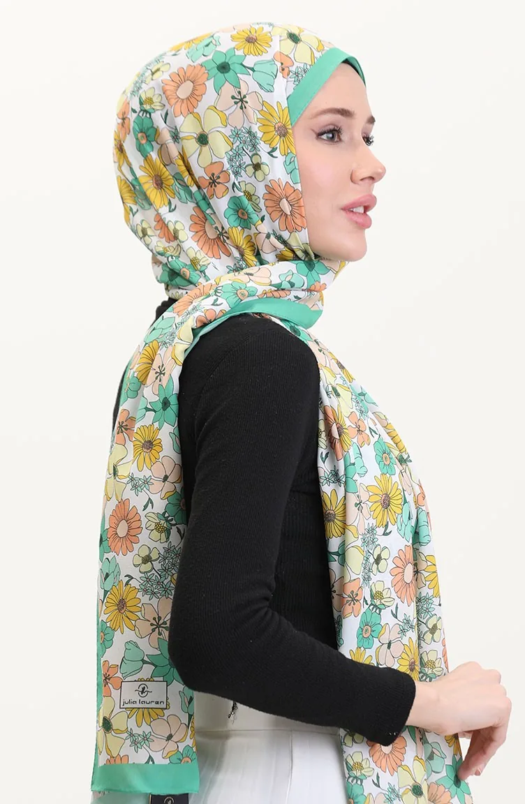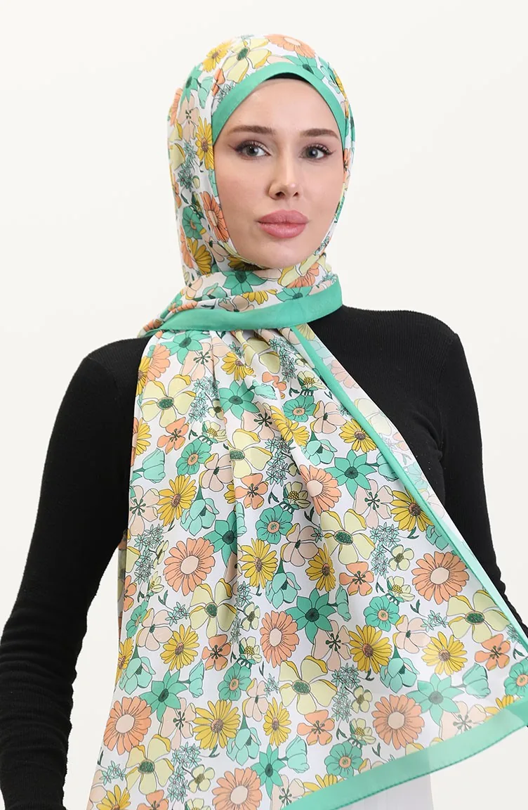 Desenli Soft Şal 70263-03 Yeşil Sarı