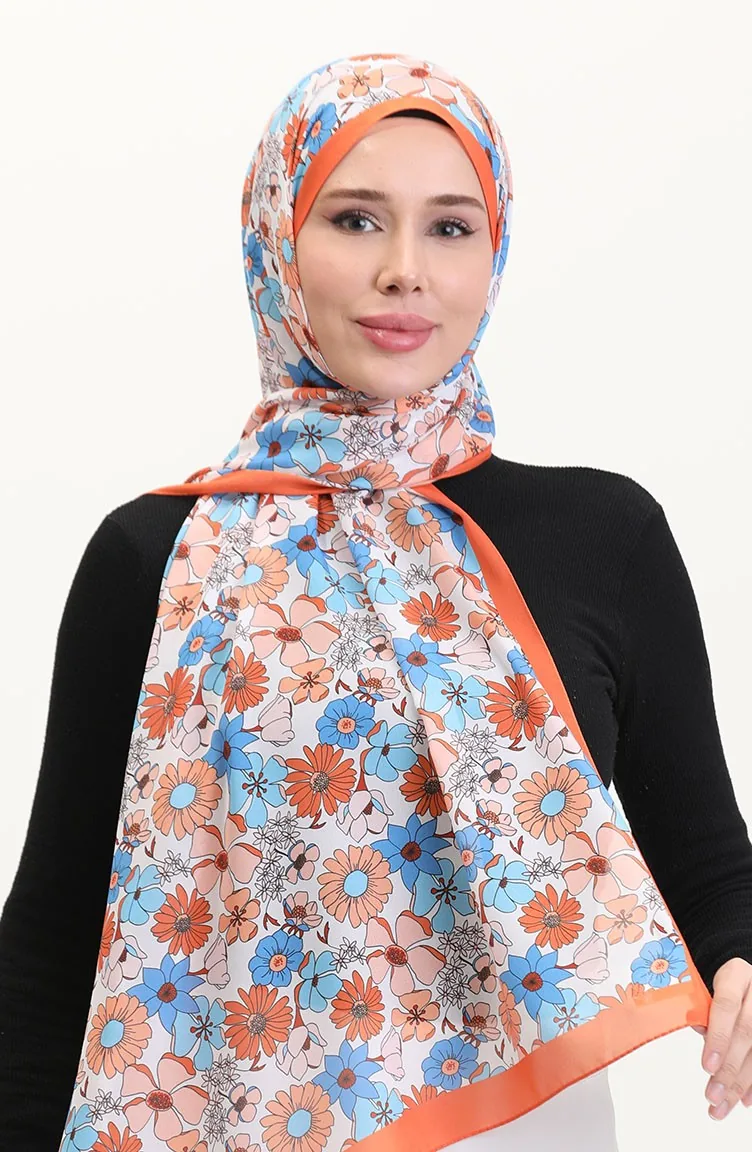 Desenli Soft Şal 70263-09 Turuncu Mavi