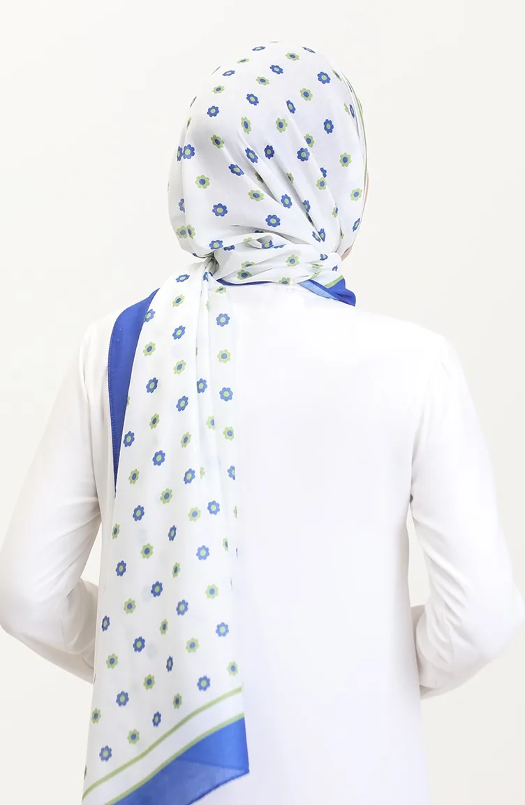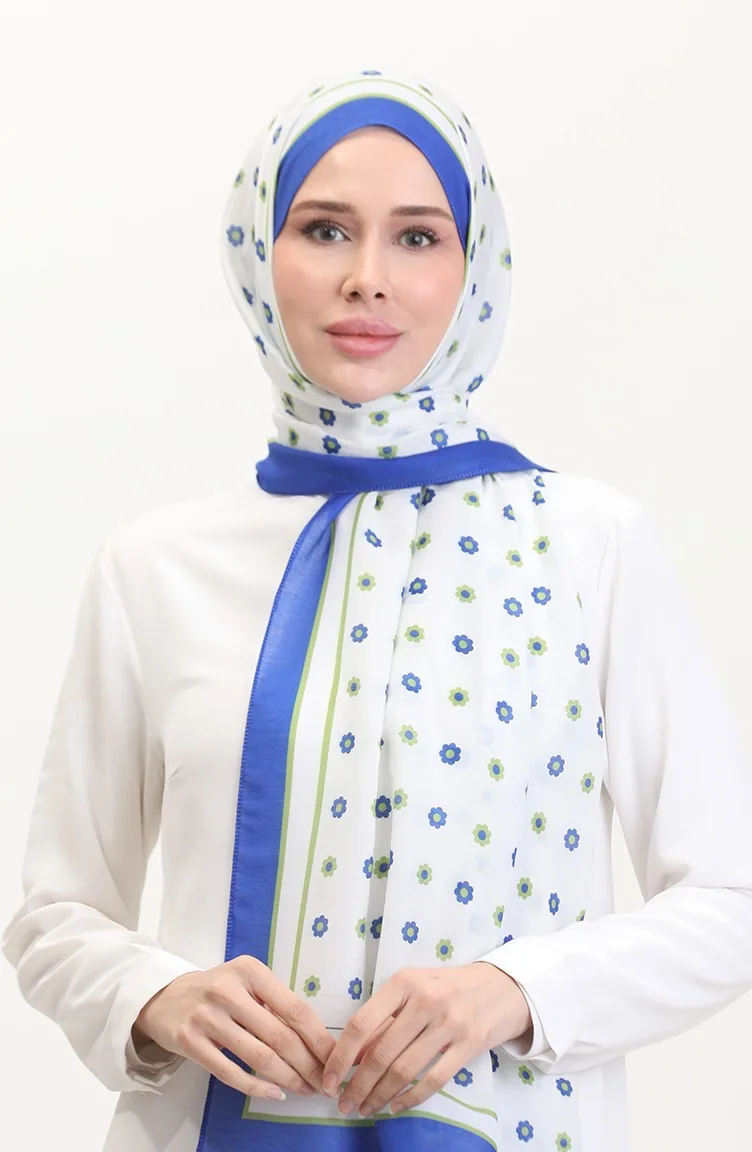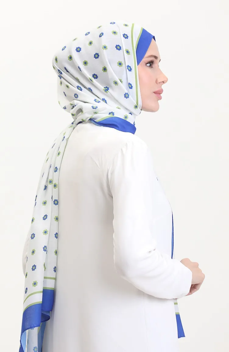 Desenli Soft Şal 70265-01 Saks Yeşil