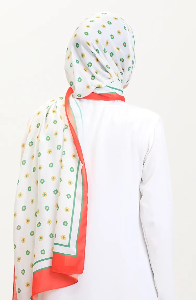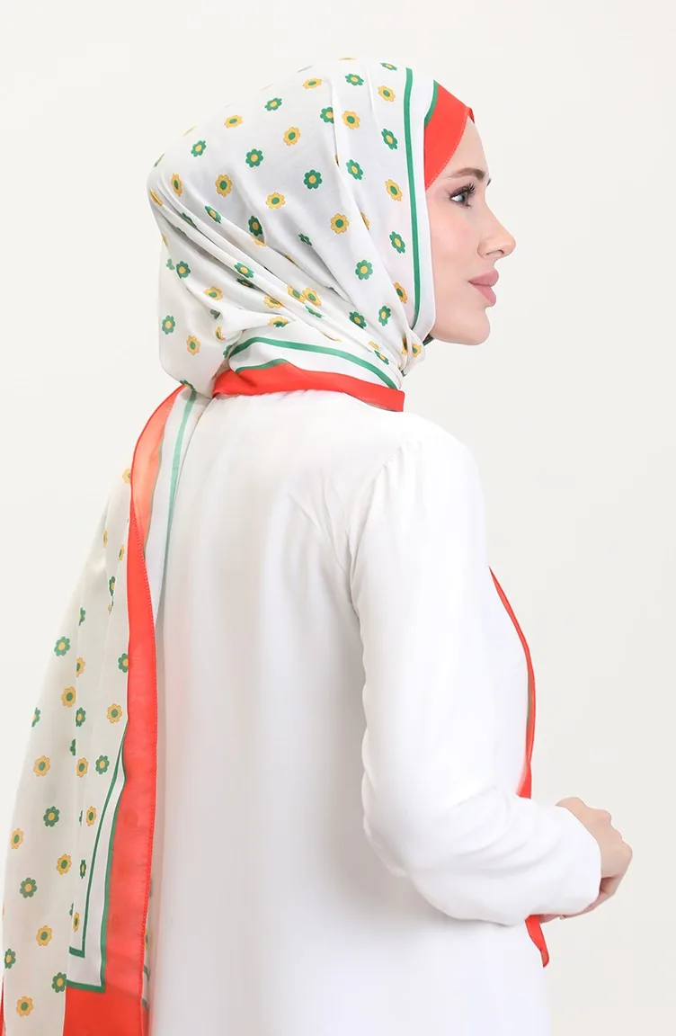 Desenli Soft Şal 70265-05 Turuncu Yeşil