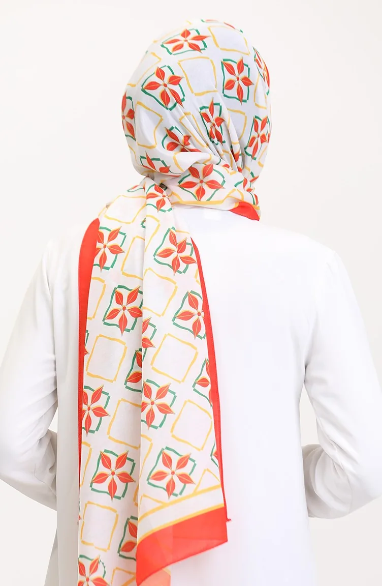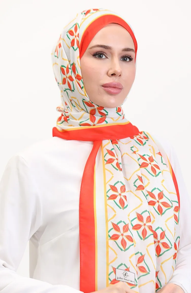 Desenli Soft Şal 70269-10 Turuncu Yeşil