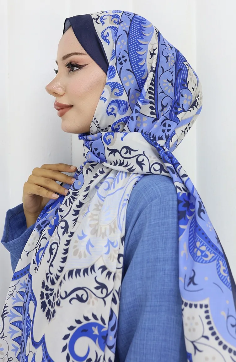 Desenli Soft Şal 70314-18 Lacivert Krem