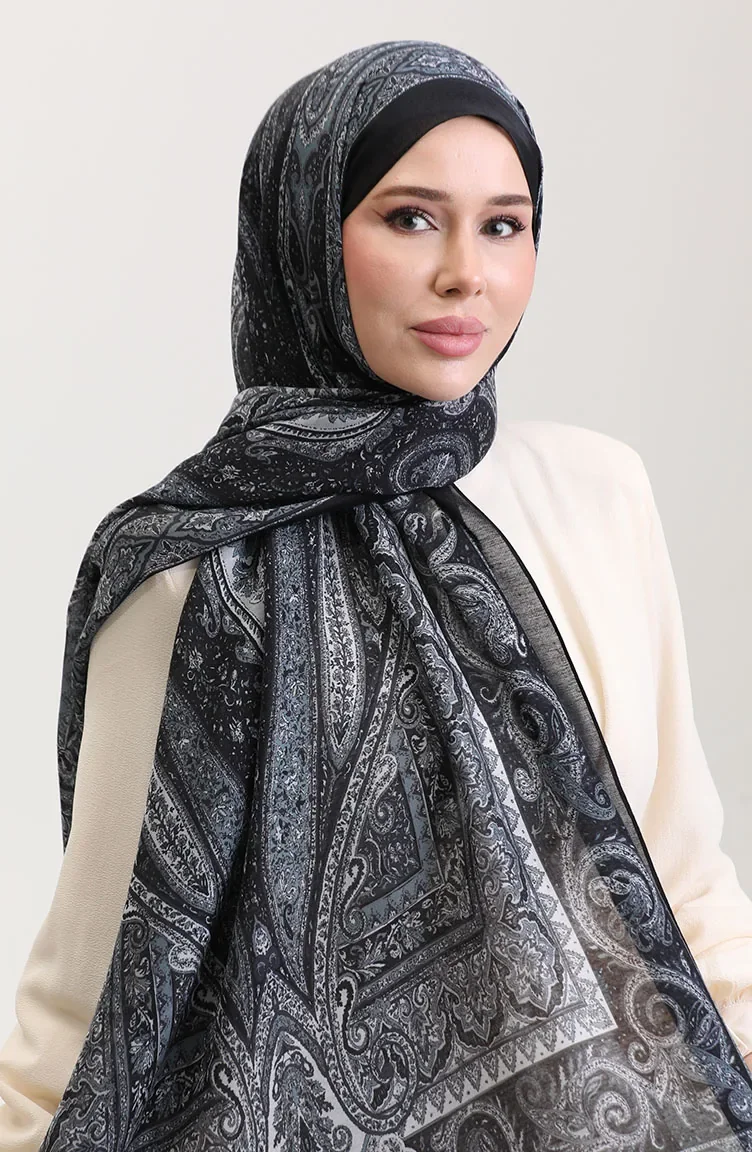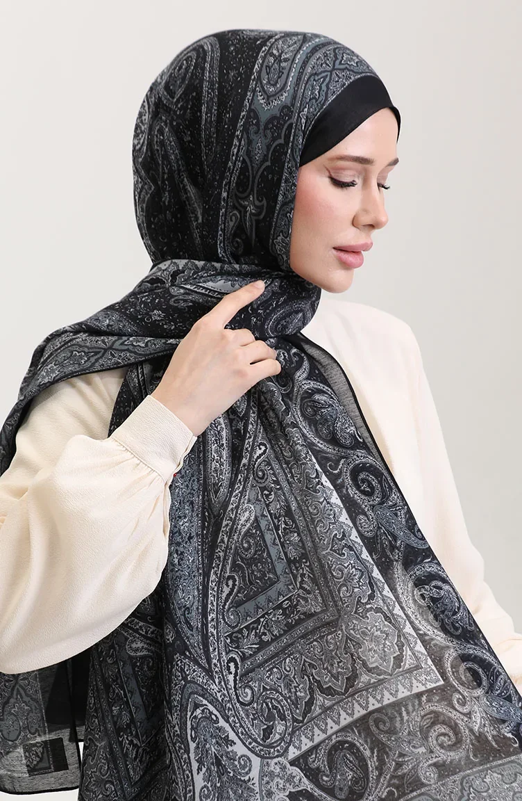 Etnik Kehribar Şal 70277-01 Siyah Gri