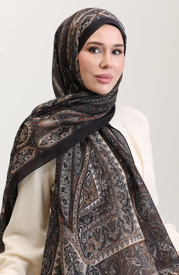 Etnik Kehribar Şal 70277-03 Acı Kahve