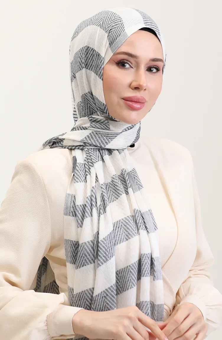 Geometrik Desenli Keten Şal 70285-07 Lacivert