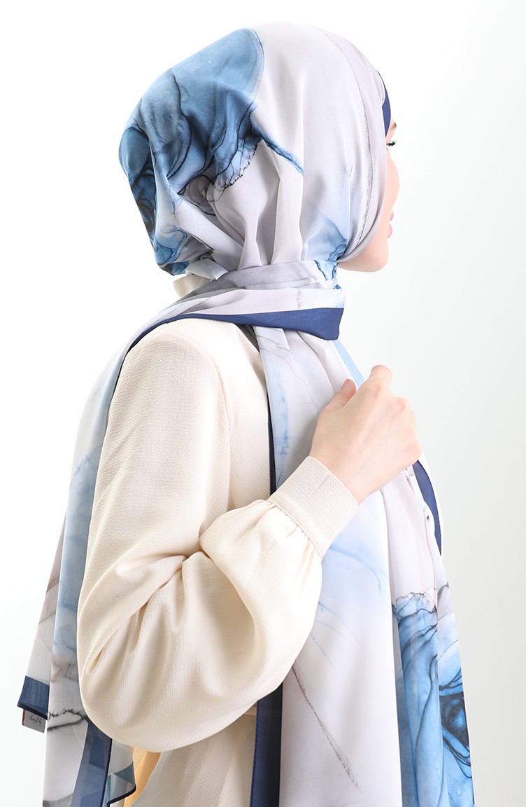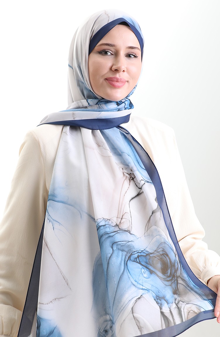 Hanzade Fransız İpeği Şal 70328-11 Lacivert Vizon