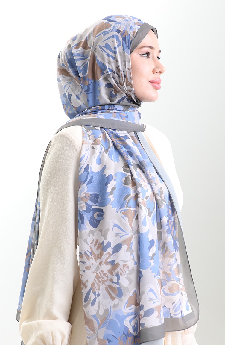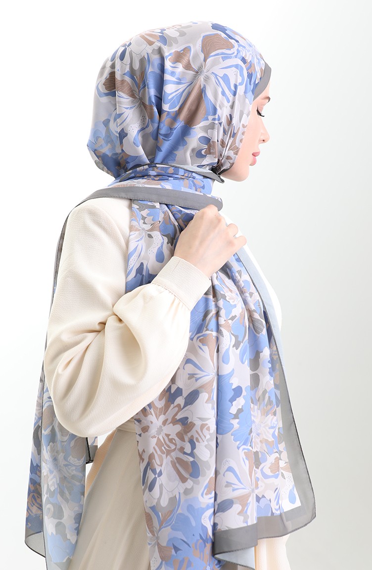 Hanzade Fransız İpeği Şal 70329-02 Toprak İndigo