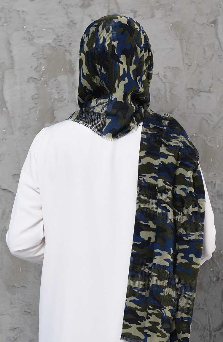 Kamuflaj Desenli Pamuklu Şal 901499-02 Lacivert Açık Yeşil
