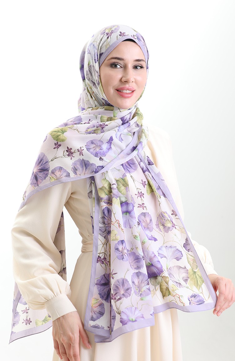 Karaca Cotton Şal 82006-11 Lila Ekru