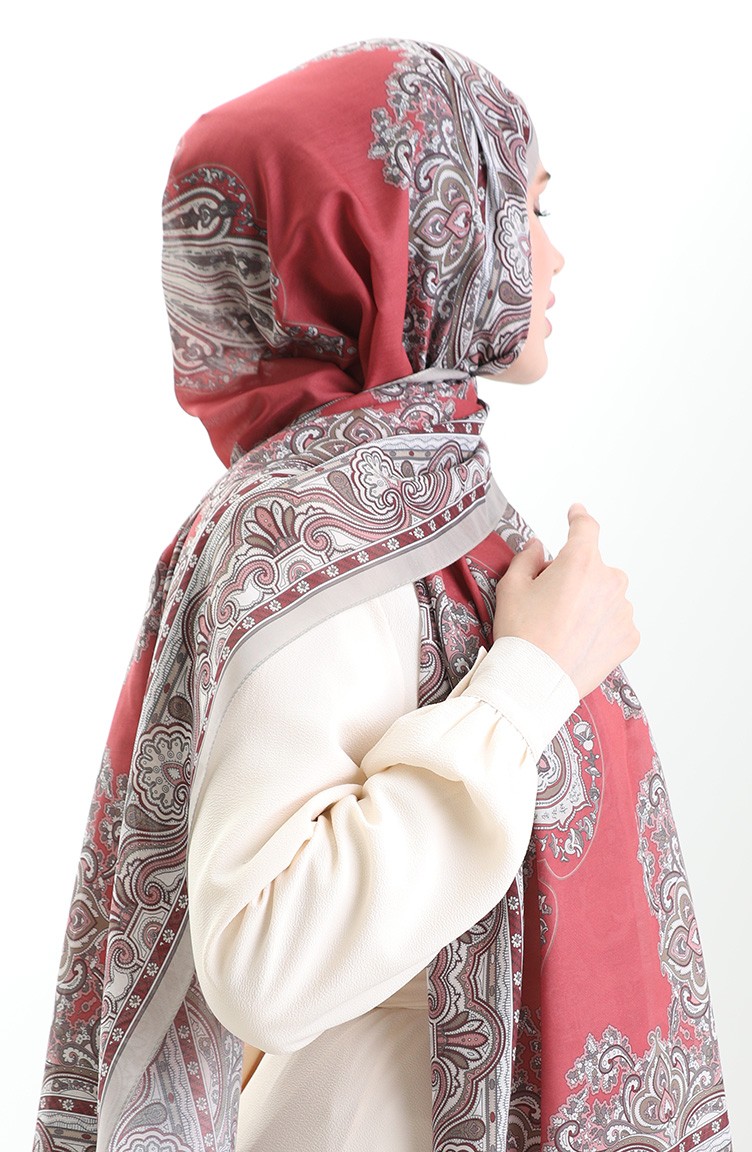Karaca Desenli Cotton Şal 82002-08 Vizon Kırmızı