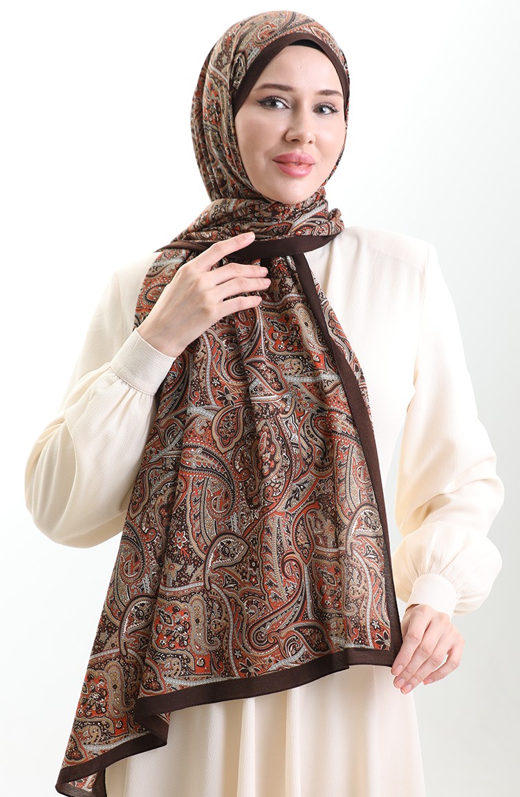 Karaca Desenli Mio Şal 82011-06 Acı Kahve Kiremit