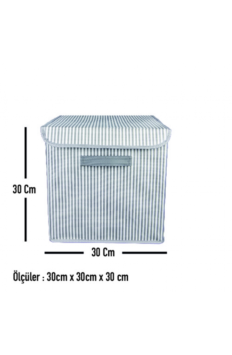 Rope Home Gri Çizgili 30x30x30 Kapaklı Kutu 88-01 Gri