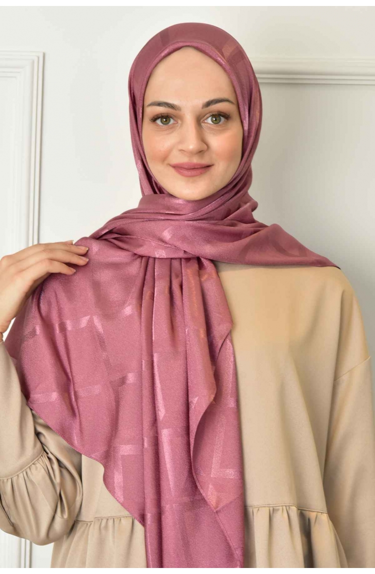 Burden Dörtgen Desen 120 Cm Eşarp 00002-10 Gül Kurusu