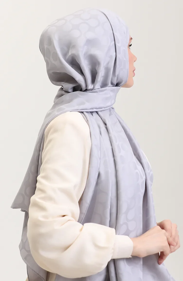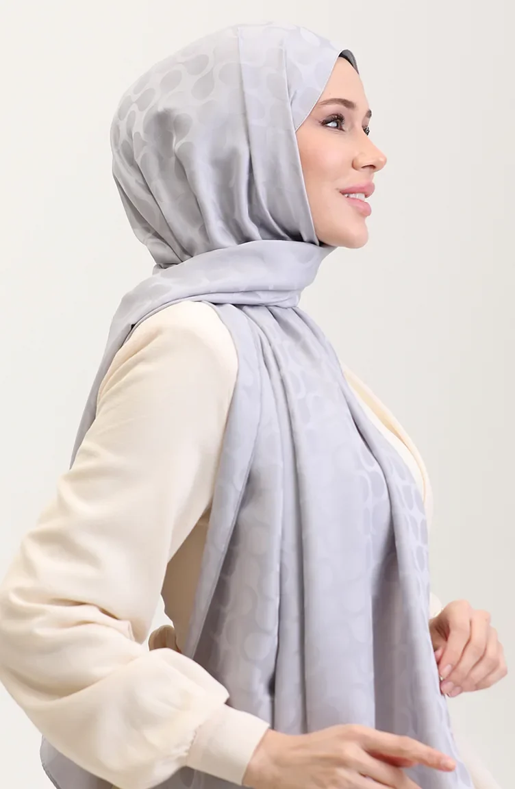Bloom Desen Jakar Şal 90183-12 Gümüş Gri