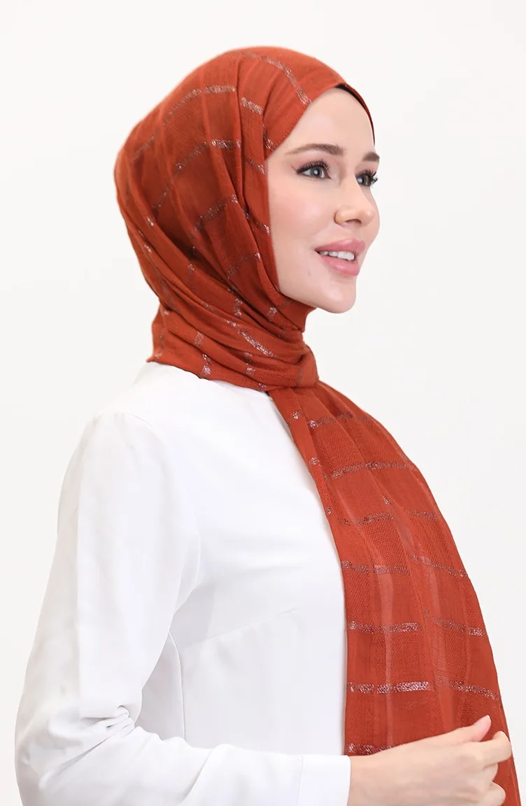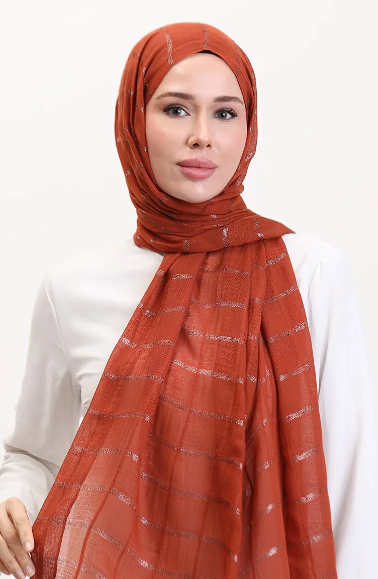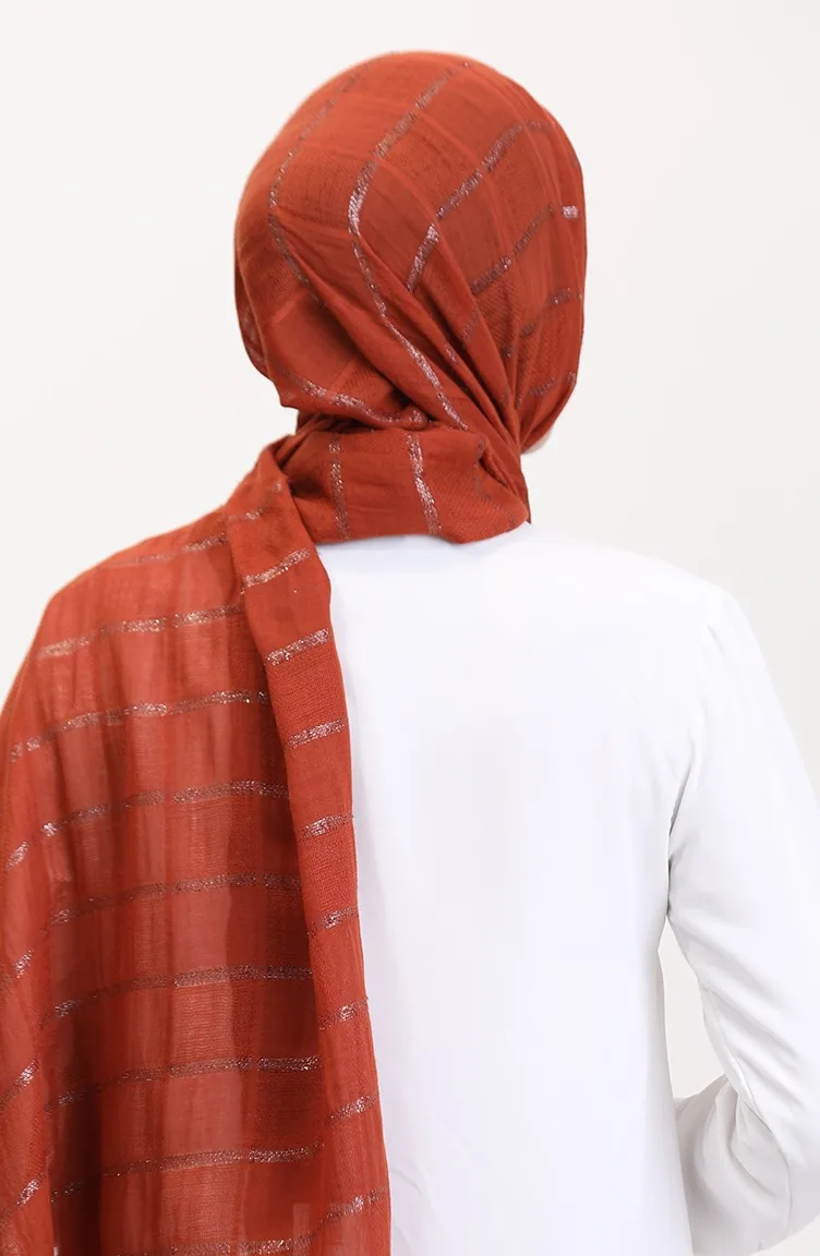 Simli Keten Şal 2072-12 Kiremit