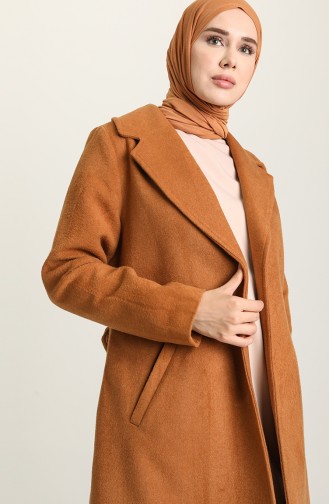 Tobacco color is used. It is cachet fabric, you can use it easily in winter. It has a plain appearance. Since the fabric thickness of the model is in the middle level, the liner is used. Long sleeve product. Designed from thick fabric. The size worn by the model, is the one on the image.