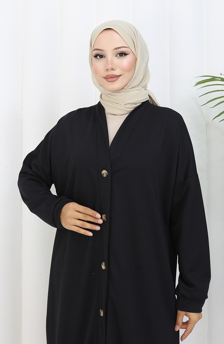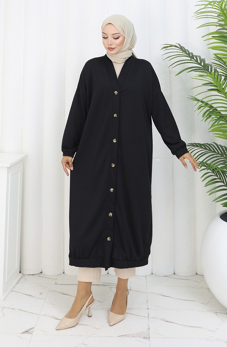 Double Thread Buttoned Long Cardigan 0181-01 Black 0181-01