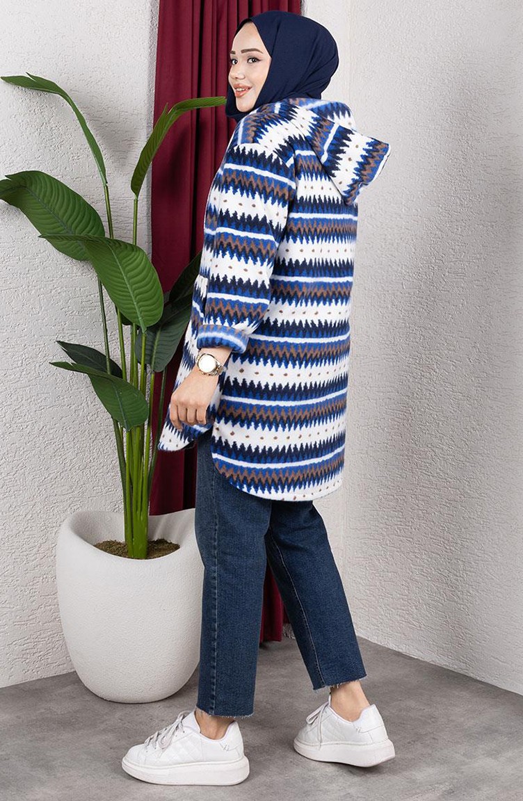Patterned Hooded Plush Cardigan 2062-03 Saks 2062-03