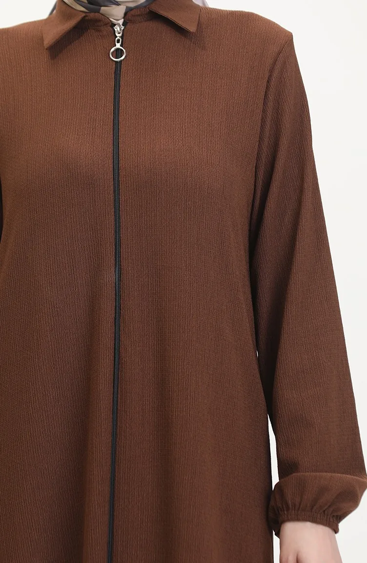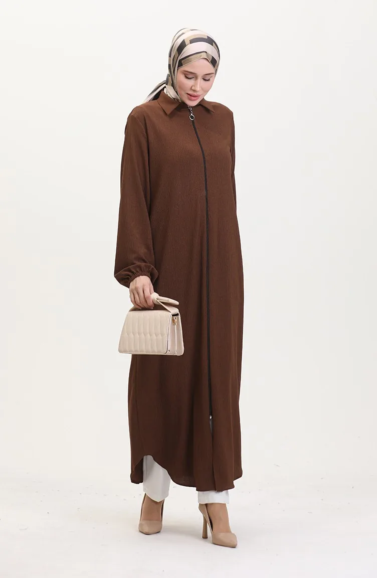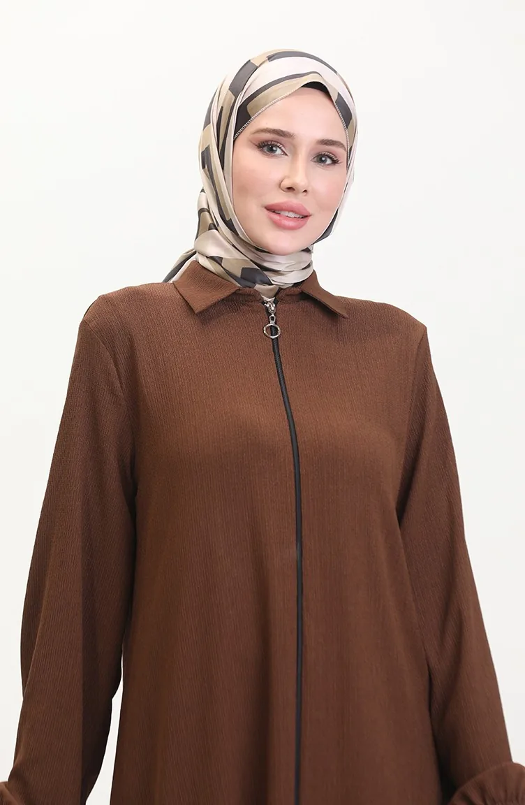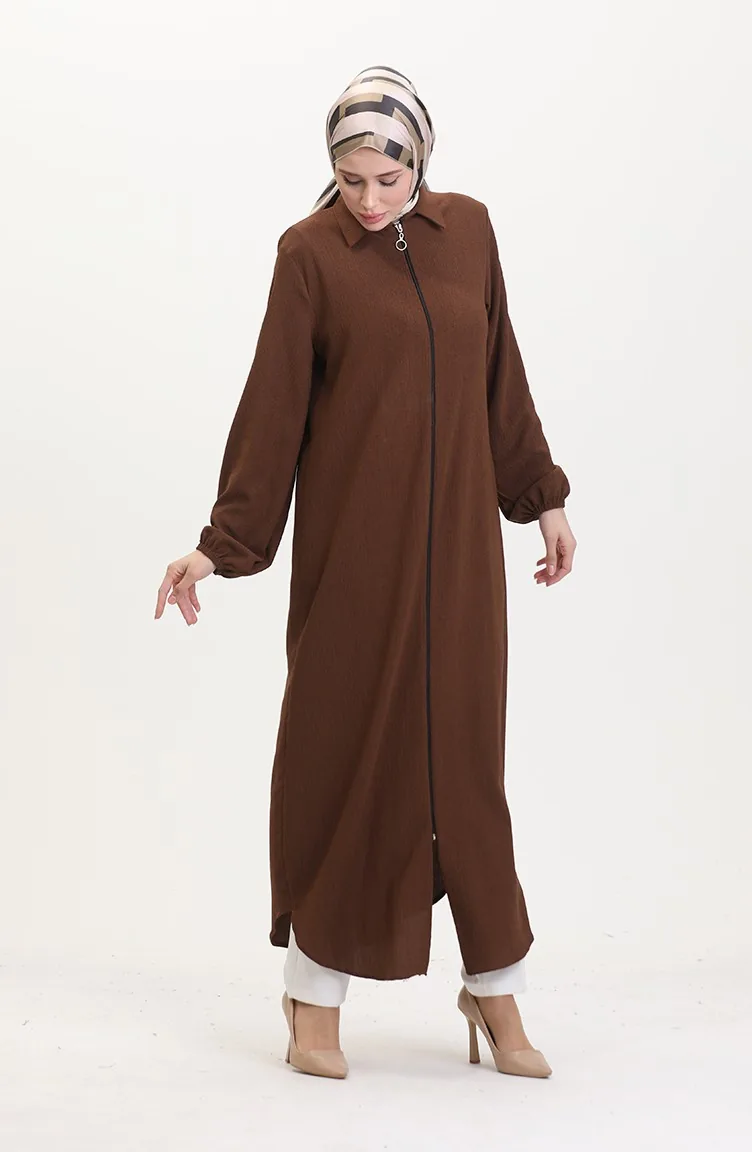 Collared Zippered Abaya 1021-06 Brown 1021-06