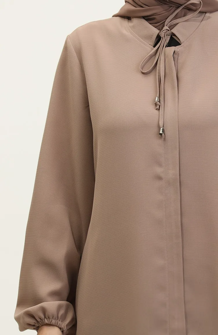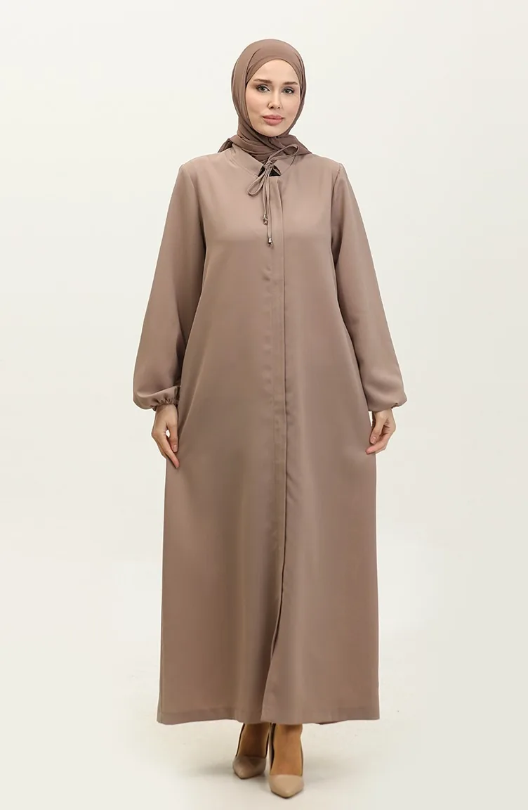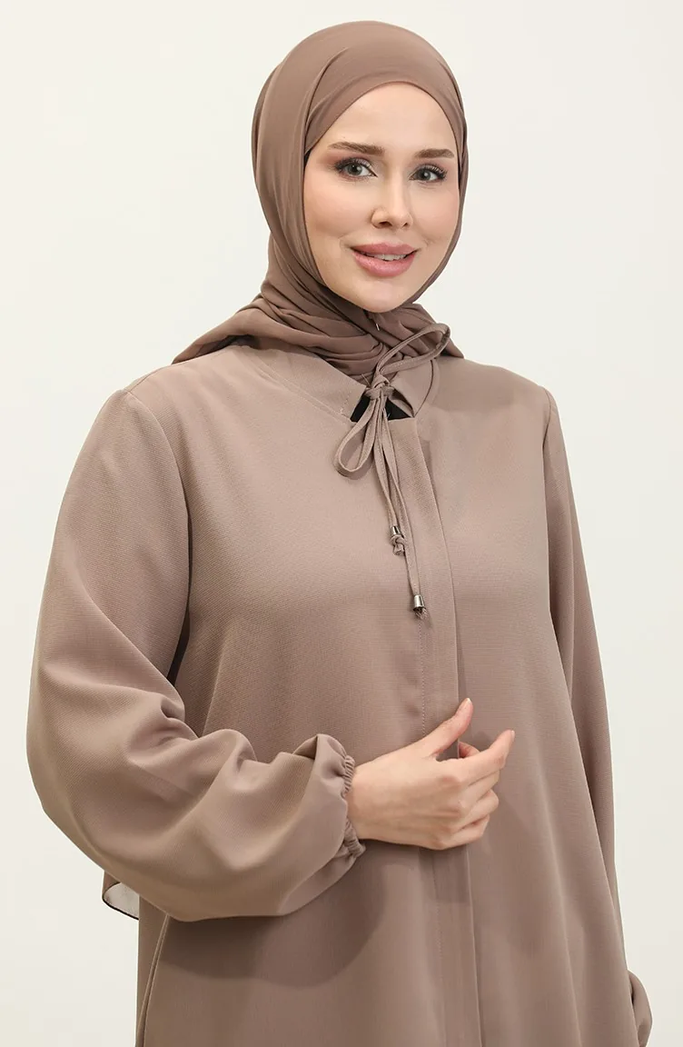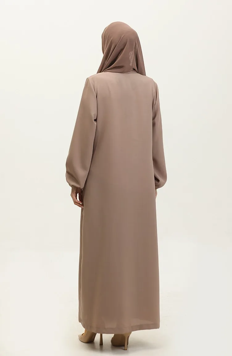 Elastic Sleeve Plus Size Abaya Pockets 5197-02 Mink 5197-02