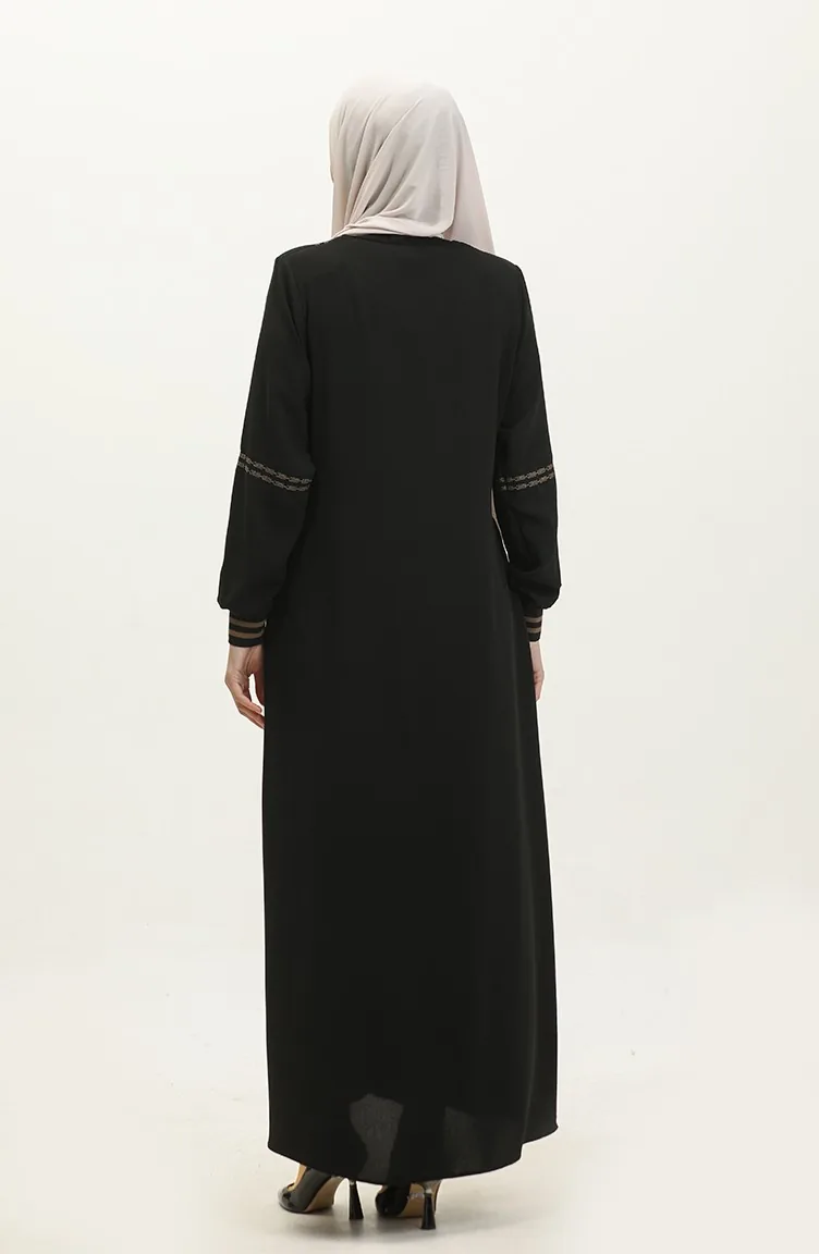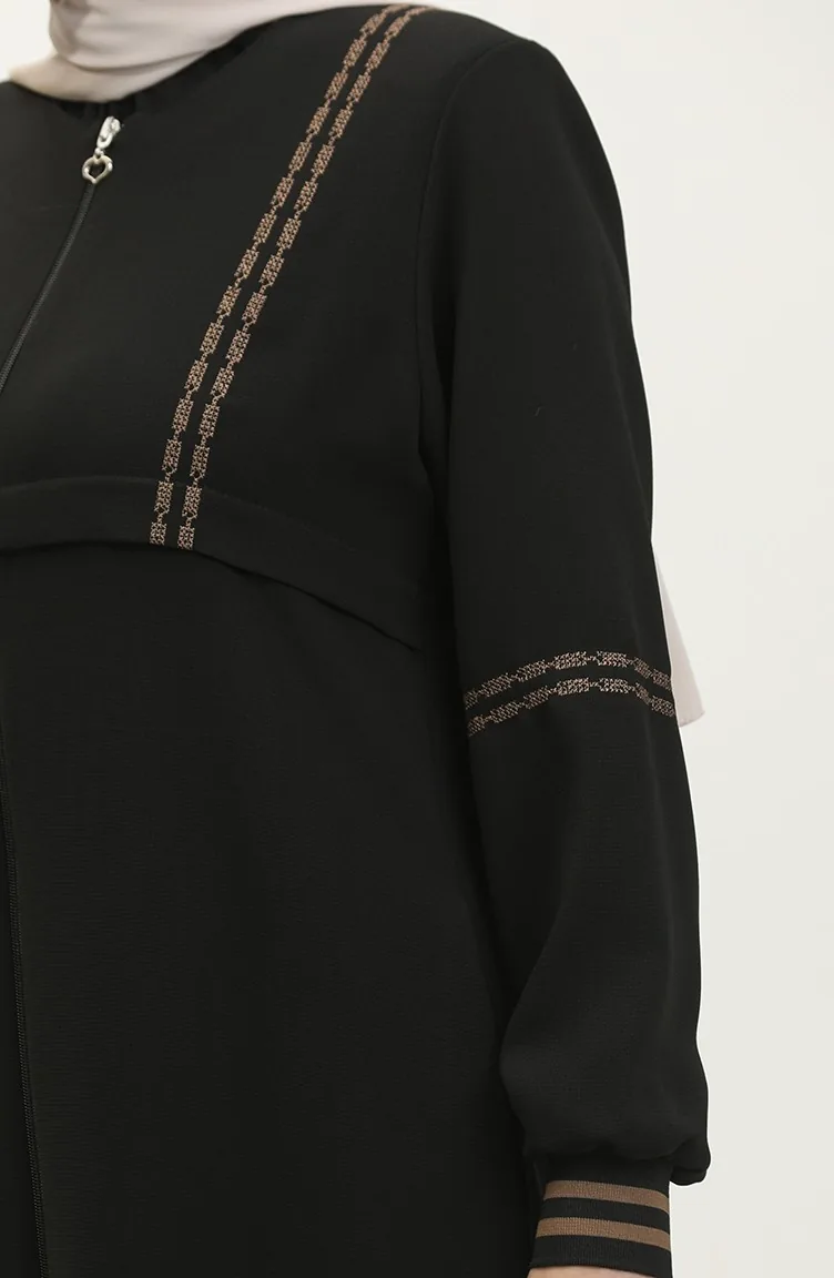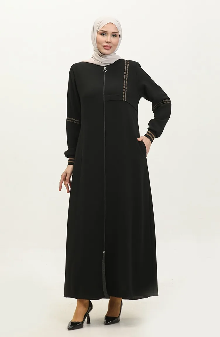 Plus Size Ribbed Zippered Abaya 5064-01 Black 5064-01