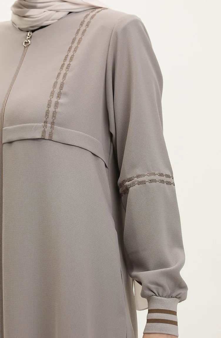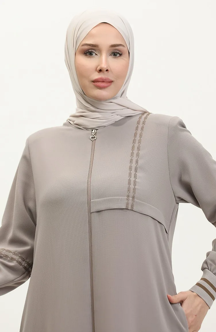 Plus Size Ribbed Zippered Abaya 5064-07 Mink 5064-07