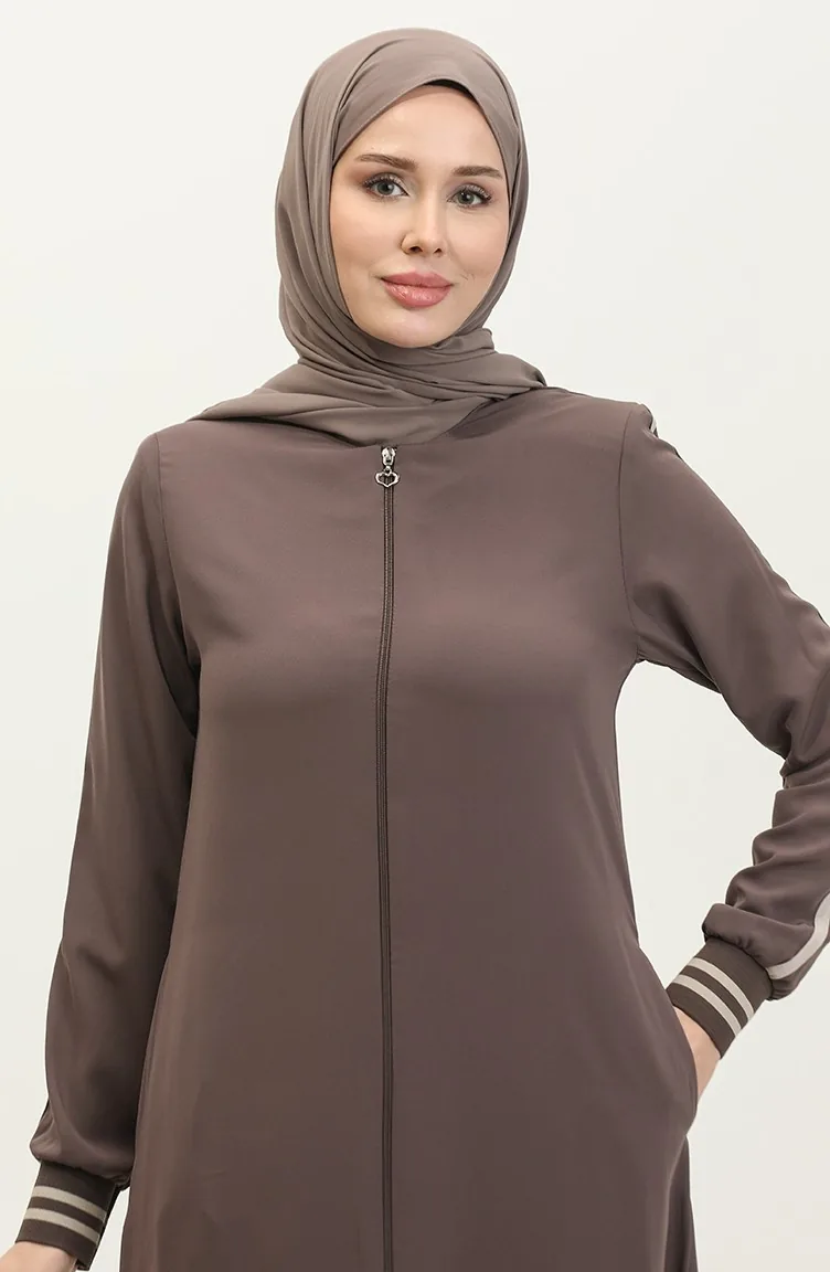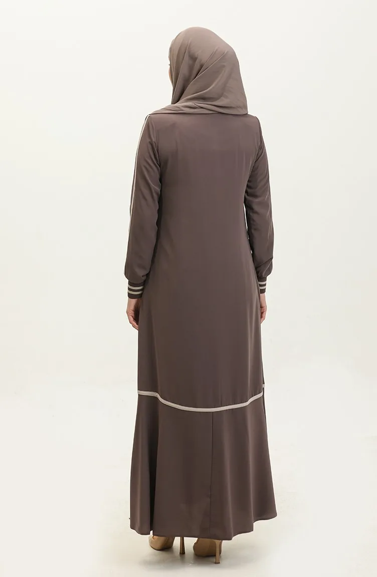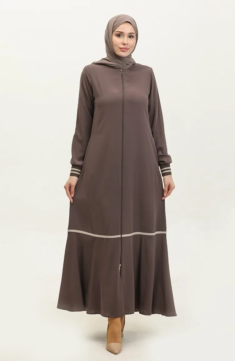 Zippered Abaya 5043-07 Milk Coffee 5043-07