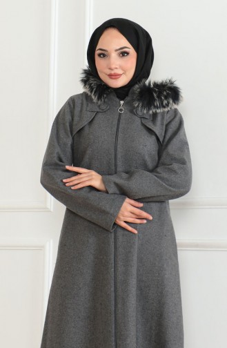 Hooded Fur Coat 2058-08 Gray 2058-08