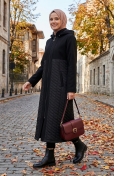 Black color is used. It is cachet fabric, you can use it easily in winter. It has a plain appearance. Since the fabric thickness of the model is in the middle level, the liner is used. Designed from thick fabric. Plus size option available.
