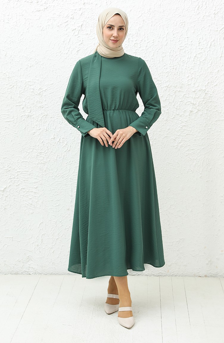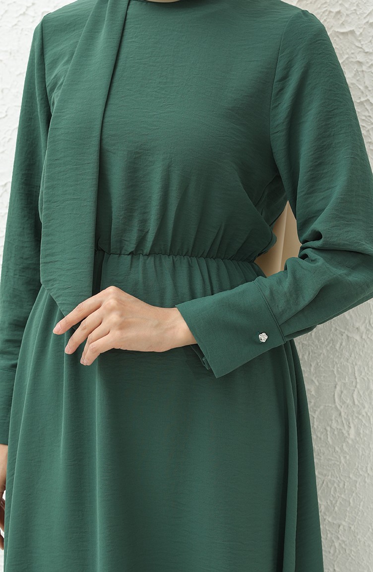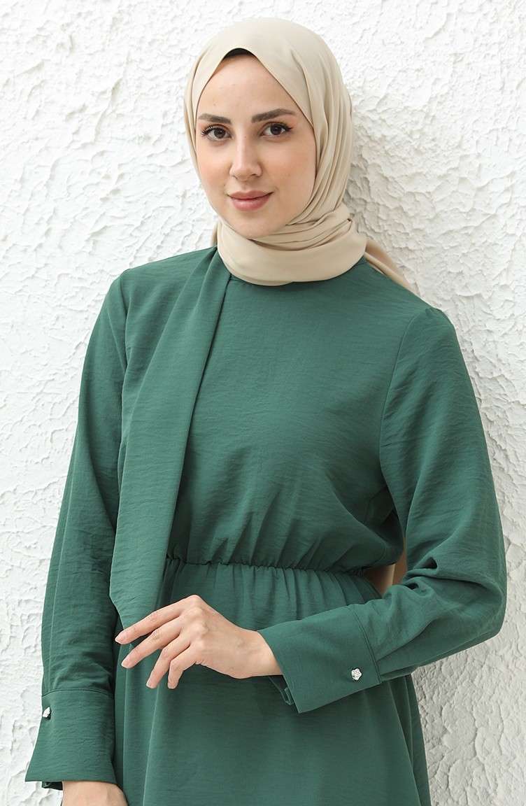 Aerobin Fabric Shirred Waist Dress 40200-02 Emerald Green 40200-02