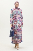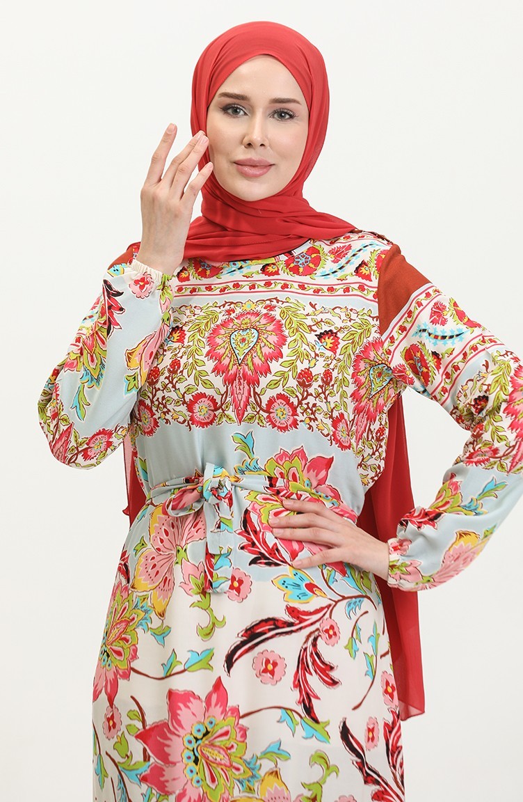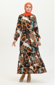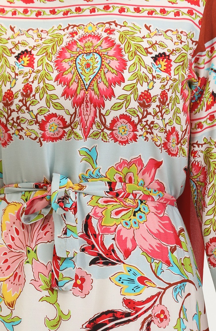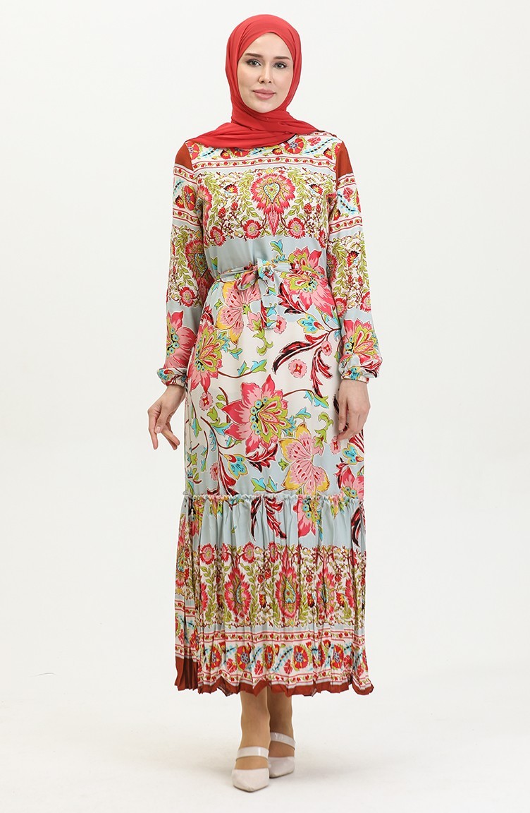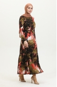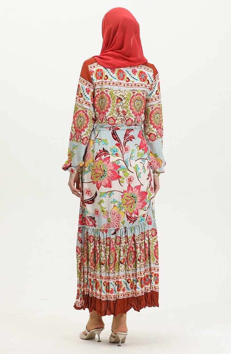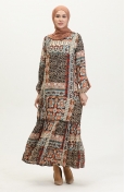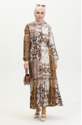 Alisa Flounced Belted Viscose Dress 4599H-01 Khaki Rose 4599H-01