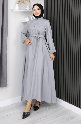 Belmando Fabric Half Button Belted Dress 2166-07 Gray 2166-07
