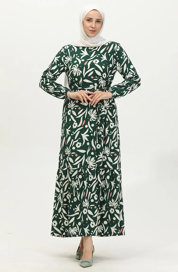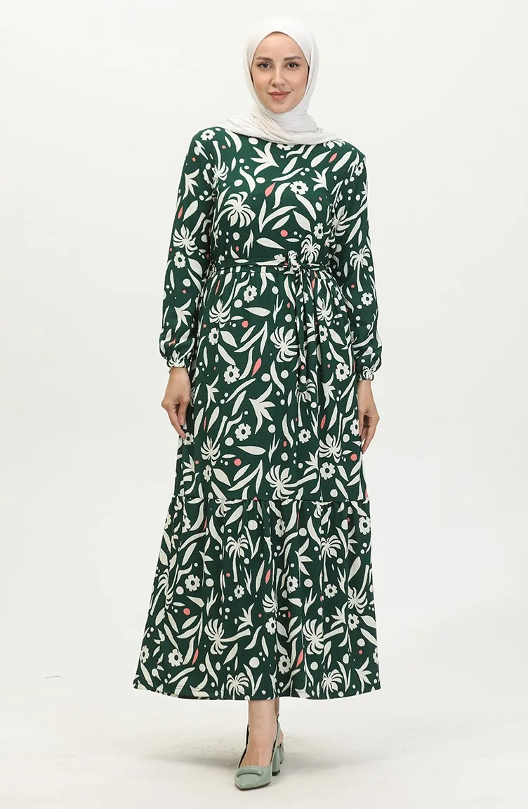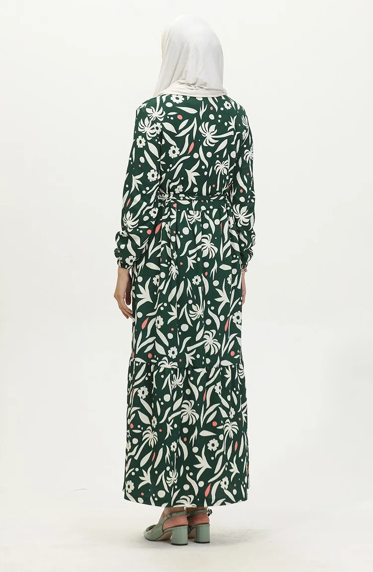 Bürümcük Palm Tree Pattern Dress 5023-02 Green 5023-02