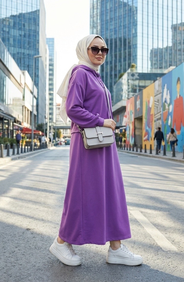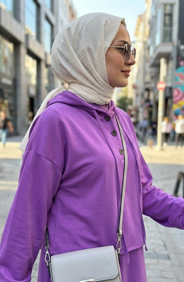 Lilac color is used. scuba crepe scuba crepe fabric. It has a plain appearance. Buttons have been used to make it easy to use. Suitable for 4 seasons. The size worn by the model, is the one on the image.