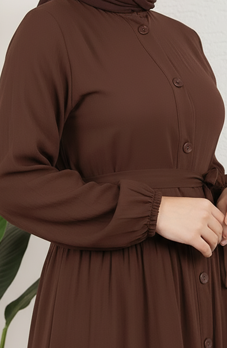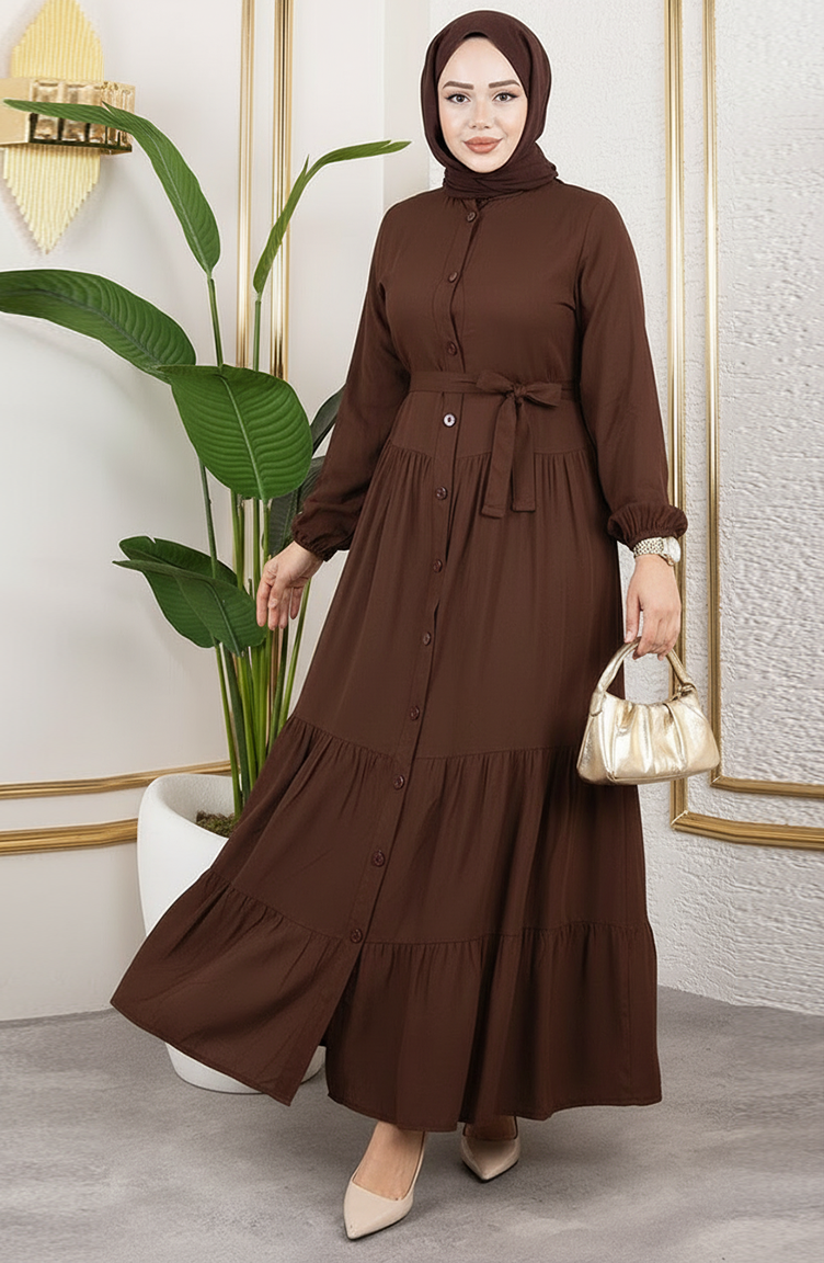 Buttoned Front Viscose Dress 1124-09 Brown 1124-09