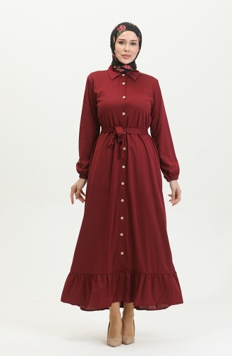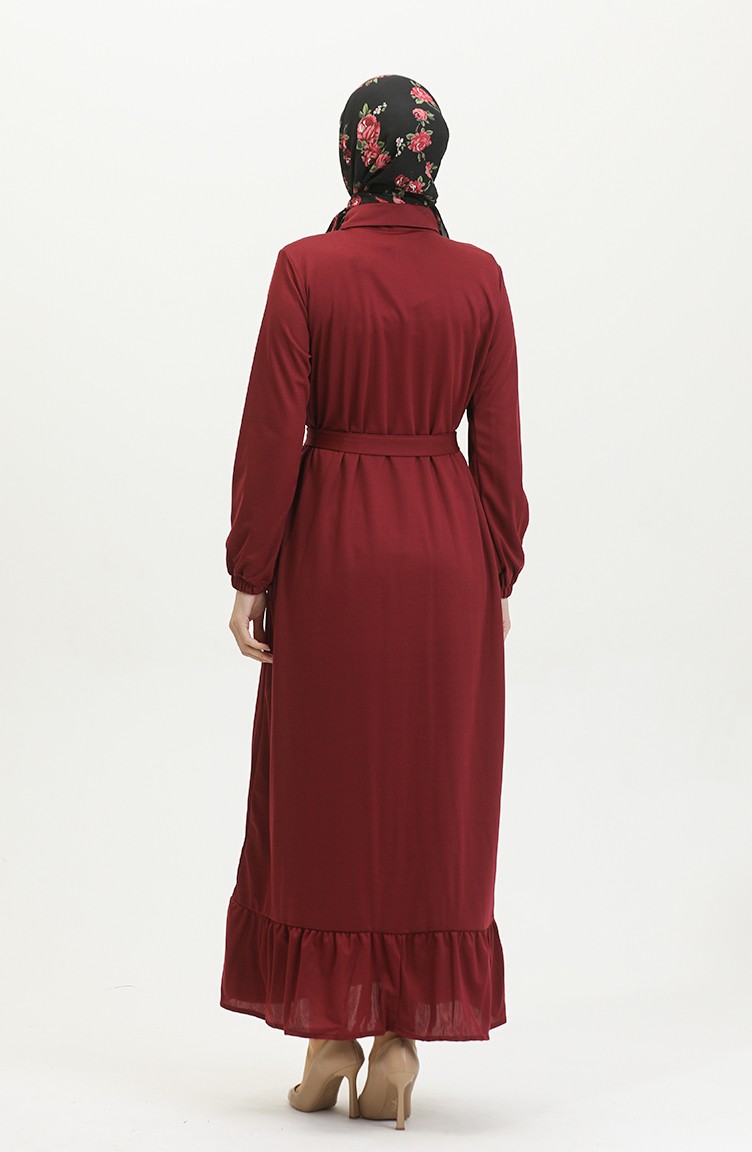 Buttoned Hijab Dress 2021-06 Burgundy 2021-06