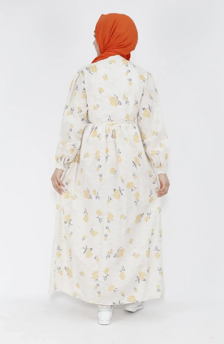 Yellow color is used. The linen fabric is resistant to heat and available in all seasons. Designed with patterned fabric. Long sleeve product. The Zero collar is preferred for all types of clothing. Designed for summer use. Woman. Plus size option available.