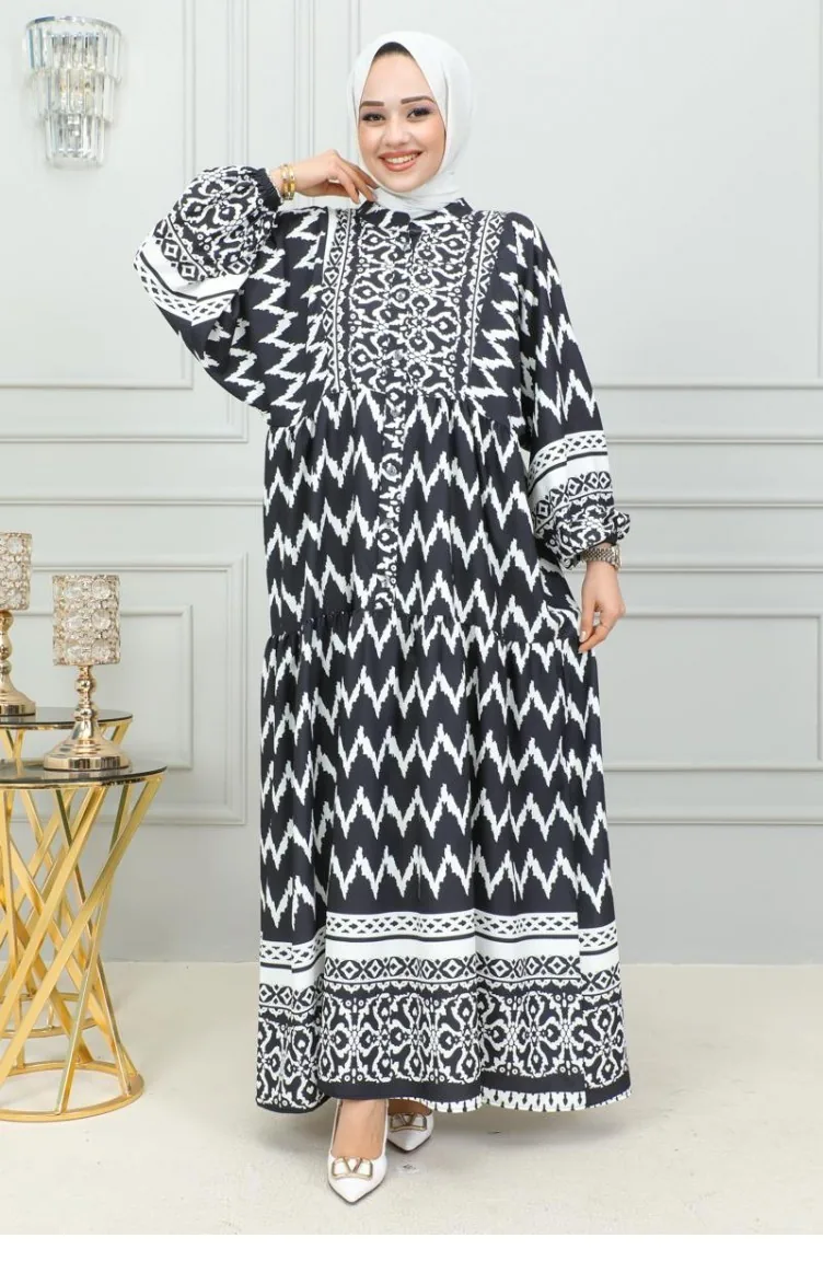Digital Printed Hijab Dress 0300-03 Black 0300-03