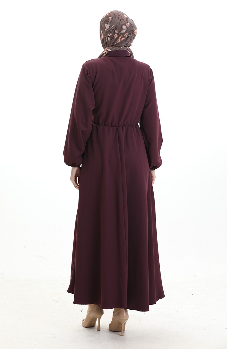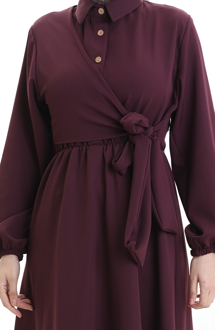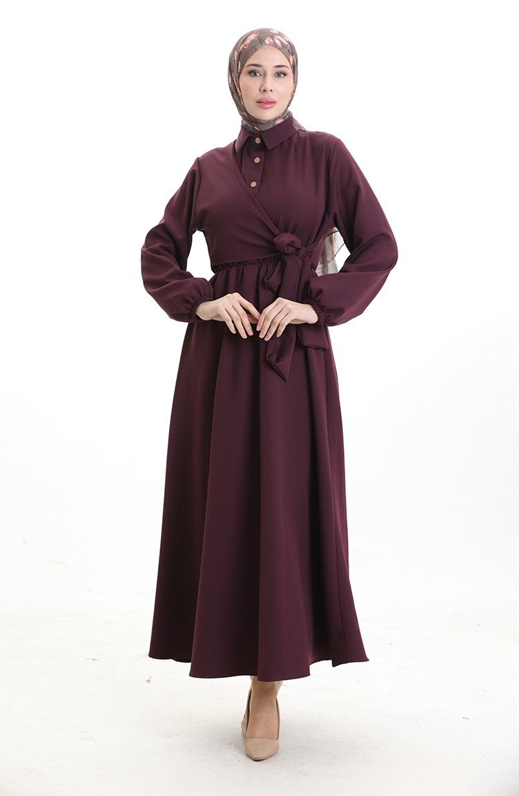 Double-Breasted Buttoned Belted Dress 0198-01 Plum 0198-01